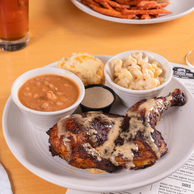 Served with bourbon cola bbq sauce, buttermilk biscuit, frijoles charros, and potato salad. Limited supply, starts at 5:00pm daily.